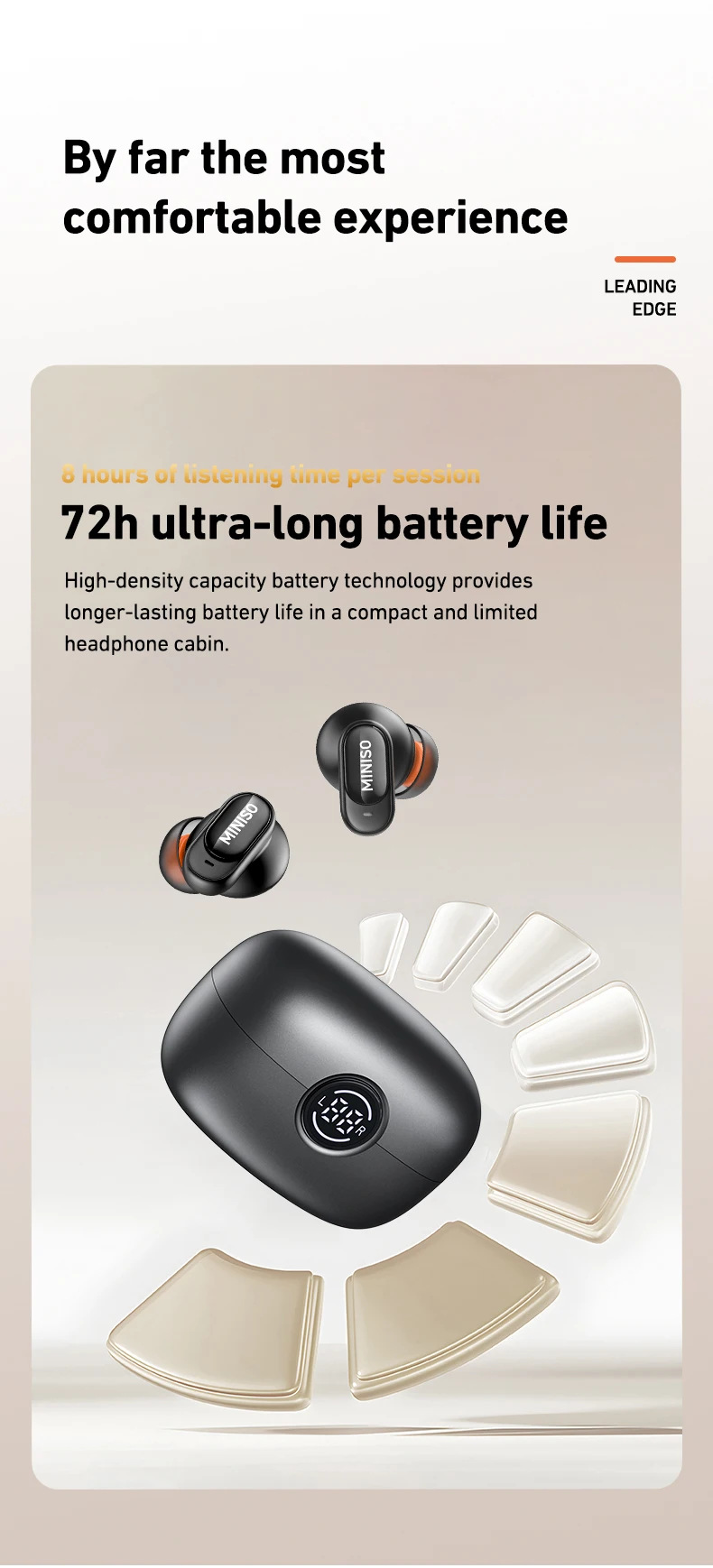 Battery performance is optimized for daily use, providing hours of playback on a single charge. The compact charging case extends total listening time and fits easily into a pocket or bag, making it perfect for travel or commuting. Fast charging support ensures minimal downtime so you can get back to enjoying your audio quickly.